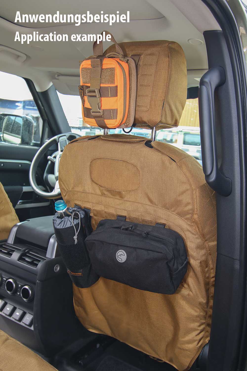 As with all Nakatanenga textile products, we also make sure that we integrate many useful storage space options with the seat covers. Generously dimensioned MOLLE surfaces on the sides, as well as pockets on the front of the seat and on the back allow equipment, utensils and much more to be accommodated permanently or temporarily.